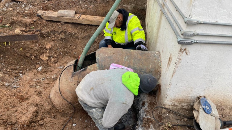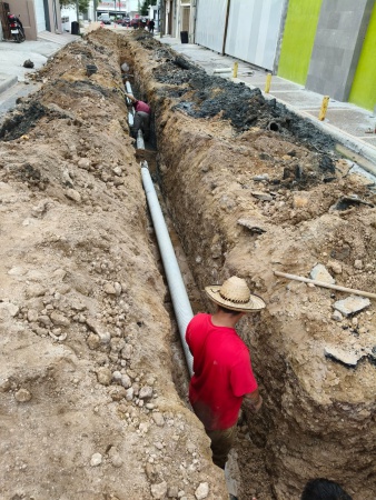 Por instrucciones del Alcalde, Carlos Peña Ortiz, la Comisión Municipal de Agua Potable y Alcantarillado de Reynosa lleva a cabo la rehabilitación de la red de drenaje sanitario sobre la calle Chile, entre Perú y Ecuador, en la colonia Anzaldúas.
