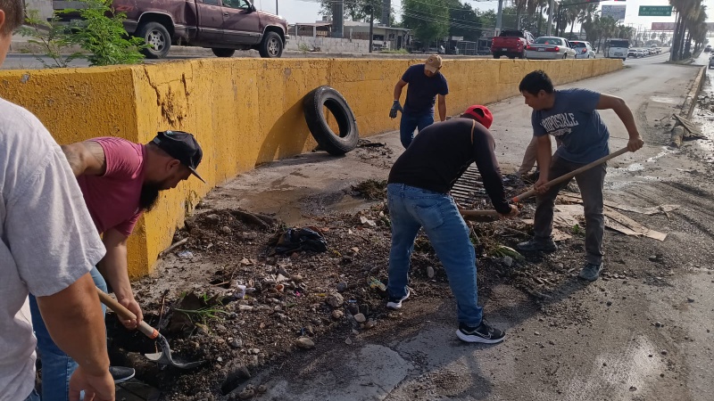 Durante estas labores, el personal del organismo extrajo basura, maleza y otros desechos que obstaculizaban el flujo del agua pluvial, lo que permite un mejor desalojo del agua y ayuda a prevenir afectaciones en calles y colonias.