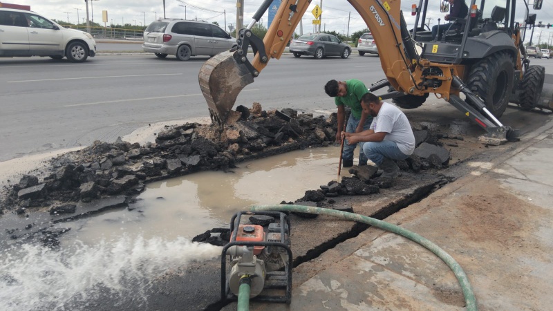 Por instrucciones del Alcalde, Carlos Peña Ortiz, la COMAPA Reynosa realiza trabajos para reparar fugas de agua potable en distintos puntos de la ciudad, con el objetivo de evitar el desperdicio del vital líquido y garantizar un servicio continuo y eficiente para todas las familias reynosenses.