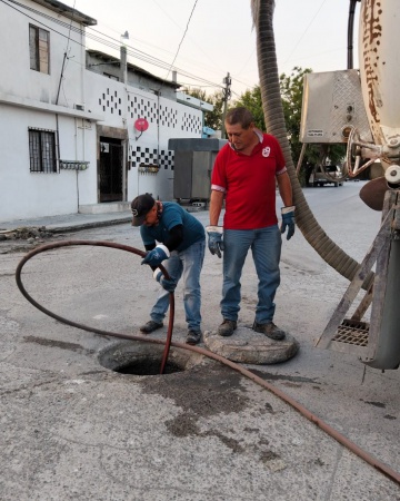 En esta ocasión, personal del organismo realiza maniobras de sondeo de línea general de drenaje sanitario sobre las calles Vicente Guerrero y Canarios, así como Leyes de Reforma e Indios Verdes, en la colonia El Anhelo. El propósito es reducir los altos niveles en la red y mejorar el flujo de las aguas residuales, beneficiando así a las familias del sector.