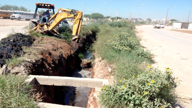 Con el propósito de evitar un rebase en los niveles de contención y prevenir inundaciones originadas por las lluvias, la Comisión Municipal de Agua Potable y Alcantarillado inició trabajos de desazolve en en el dren de desagüe ubicado en las calicheras de Balcones de Alcalá.