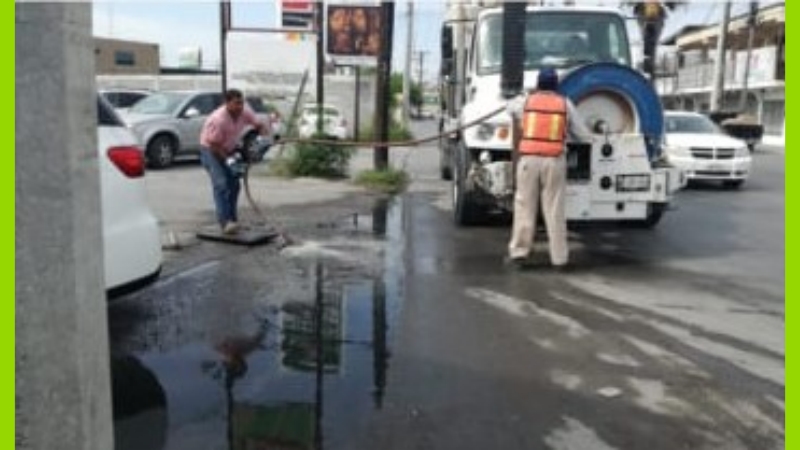 Cuadrillas de la COMAPA de Reynosa sanearon una línea general y alcantarillas en las colonias Margarita Maza de Juárez y la Rodríguez, respectivamente, logrando reponer el servicio de drenaje sanitario.