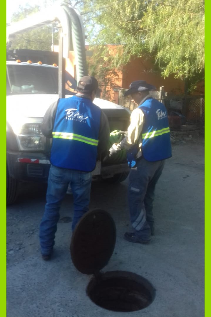 Para evitar brotes de aguas residuales, trabajadores de la COMAPA de Reynosa sanearon la línea general de drenaje en la Narciso Mendoza.