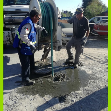 Con el apoyo del equipo Vactor de la CONAGUA, el organismo limpió a presión la línea general de drenaje ubicada en calle Miguel Hidalgo.