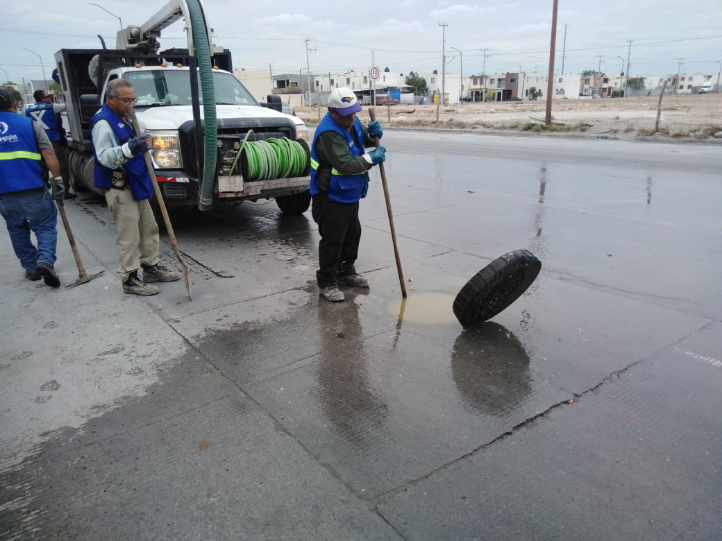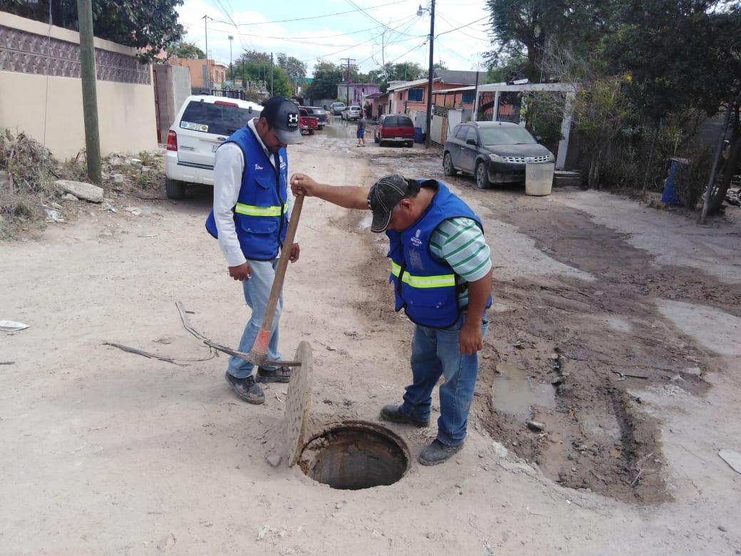 Cuadrillas de la COMAPA de Reynosa sanearon redes sanitarias y restablecieron el drenaje en las colonias La Cañada, Satélite, Longoria, San José, Los Muros, Jarachina Norte.
