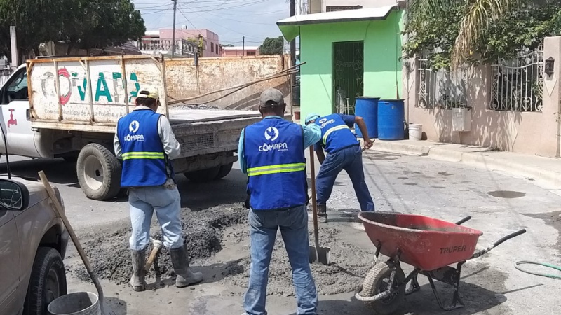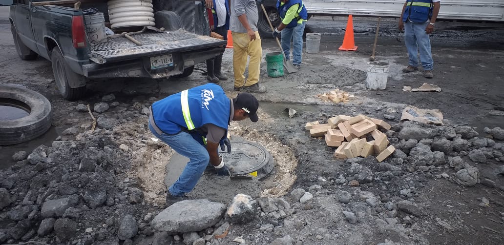 La COMAPA de Reynosa instaló una tapa de alcantarilla en la colonia Villa Esmeralda y repuso el concreto en la rehabilitación de un caído en La Cañada.