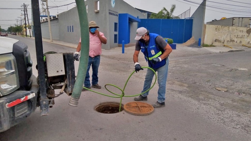 Mediante la limpieza en una línea general, se redujo el nivel del agua residual para normalizar el funcionamiento del alcantarillado en un sector de la colonia Ampliación Longoria.