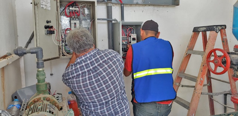 A fin de mantener el abasto de agua en Valle Soleado, se dio mantenimiento al sistema eléctrico y equipo que bombea el líquido a la cisterna y tanque elevado del fraccionamiento.