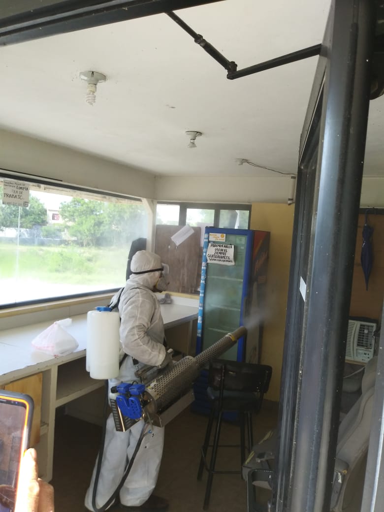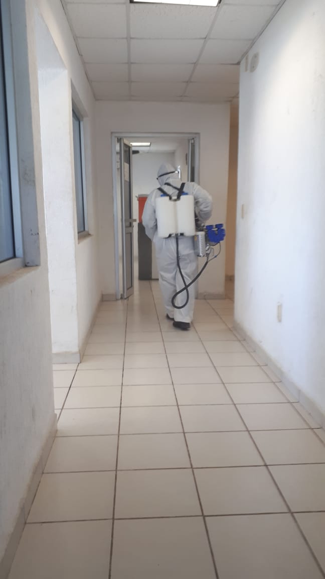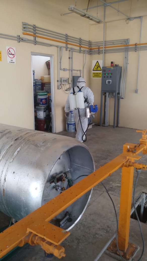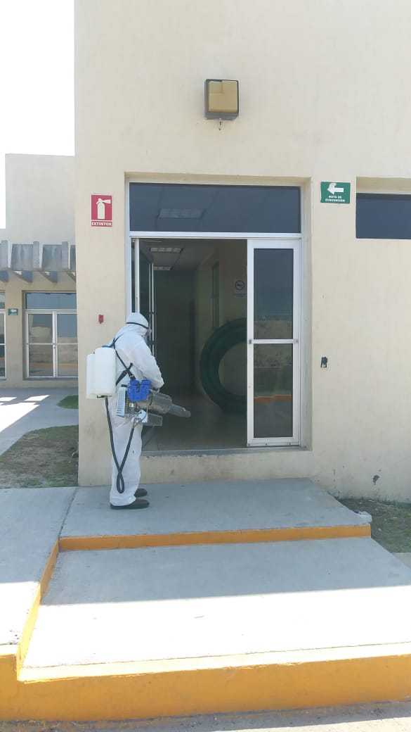 Como una medida de salud para los empleados en las Plantas Tratadoras de Aguas Residuales (PTAR´s) ante la contingencia por el COVID-19, se rociaron laboratorios y oficinas con sanitizante.