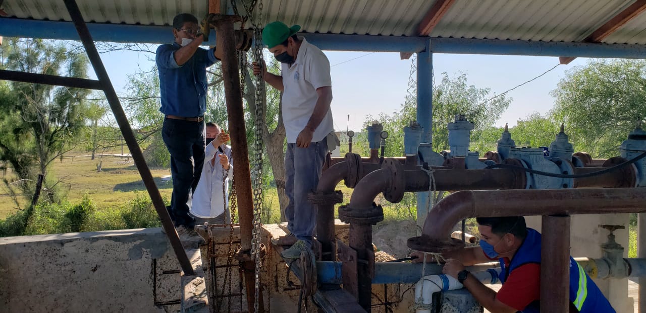 A fin de reactivar el suministro del agua en el ejido Los Cavazos, se trabaja en el reemplazo del equipamiento en la obra de toma que provee el suministro del líquido en esta comunidad.