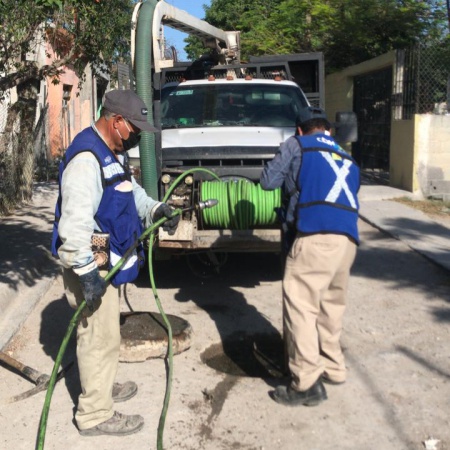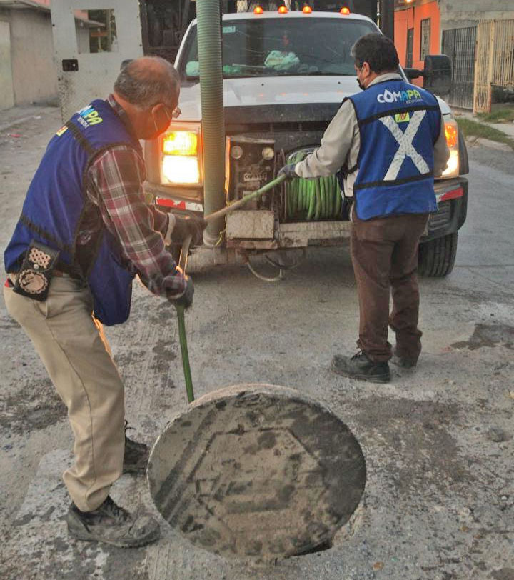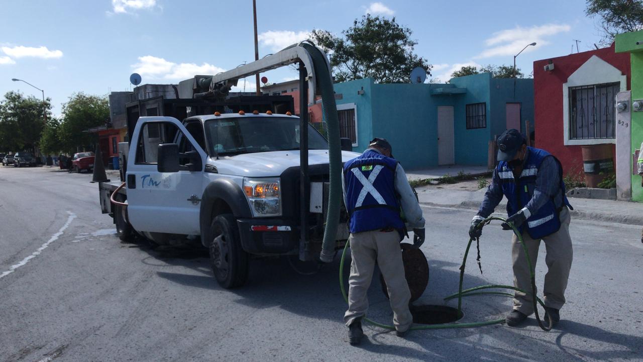 Para bajar los niveles de agua residual de alcantarillas y registros, se limpiaron sistemas sanitarios en las colonias Paseo de las Flores, Fraccionamiento Reynosa, Margarita Maza de Juárez y Los Encinos.