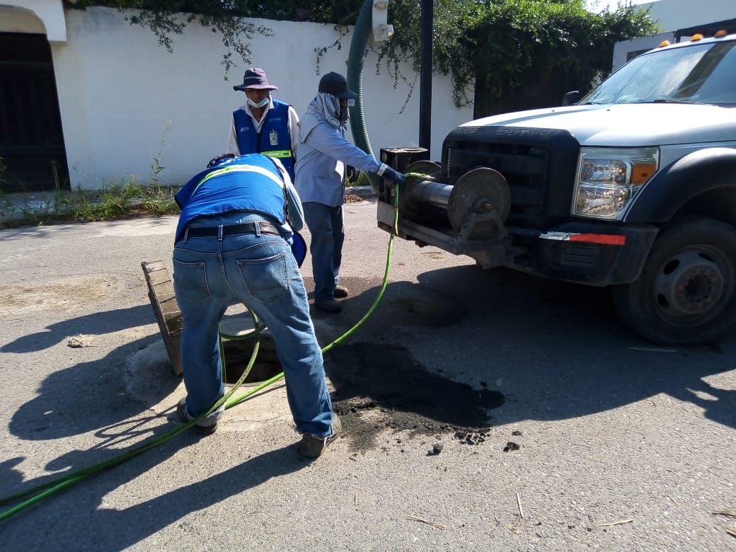 Mediante los trabajos de limpieza, a profundidad, en las redes sanitarias, se mejoró el servicio del drenaje sanitario varias colonias.