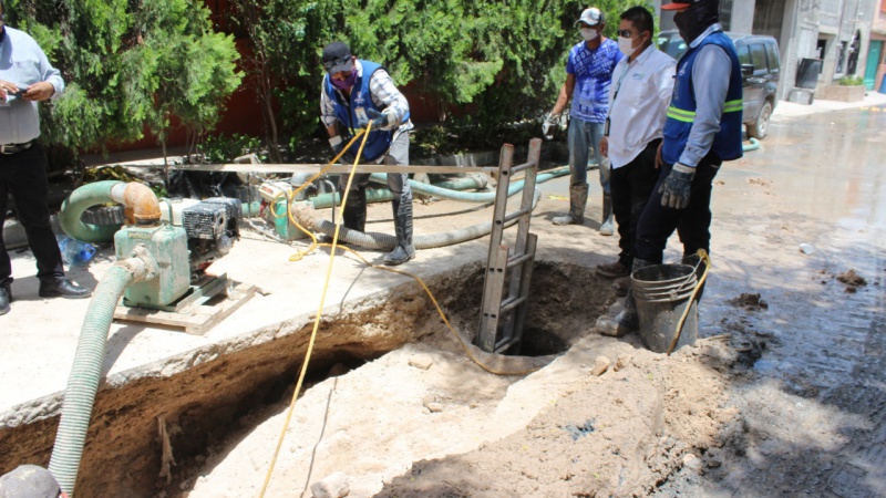 A fin de restablecer el servicio de drenaje sanitario en la calle Martín Carrera, en la colonia López Portillo III, se intensifica la rehabilitación en la tubería de 24 pulgadas de diámetro, en una superficie de 200 metros lineales.