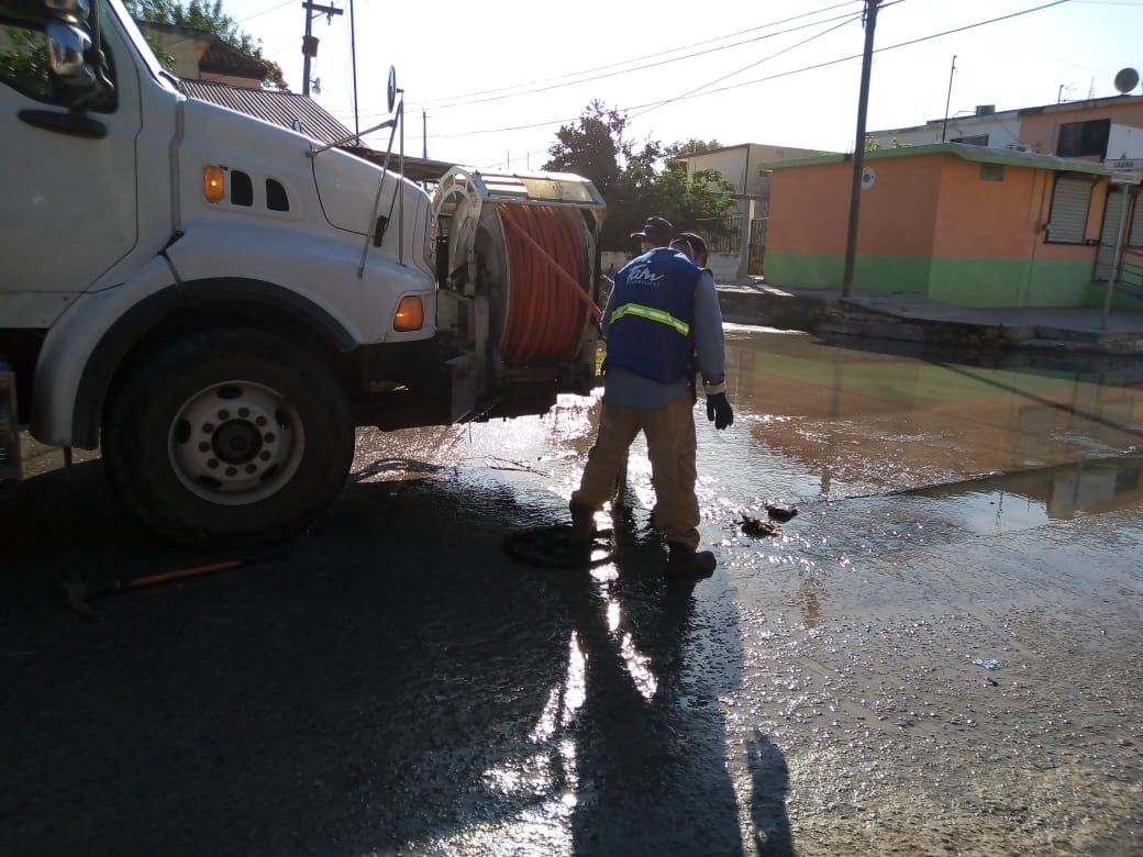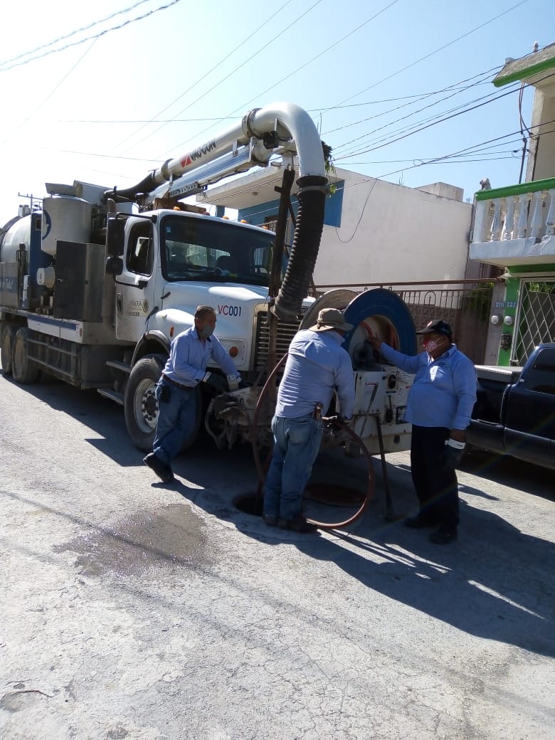 Para mejorar el servicio de drenaje, se remueven los desechos de las redes sanitarias en colonias, como se hizo recientemente en Hacienda Las Bugambilias, Hidalgo, Tamaulipas, Aztlán, La Cañada y Balcones de Alcalá.