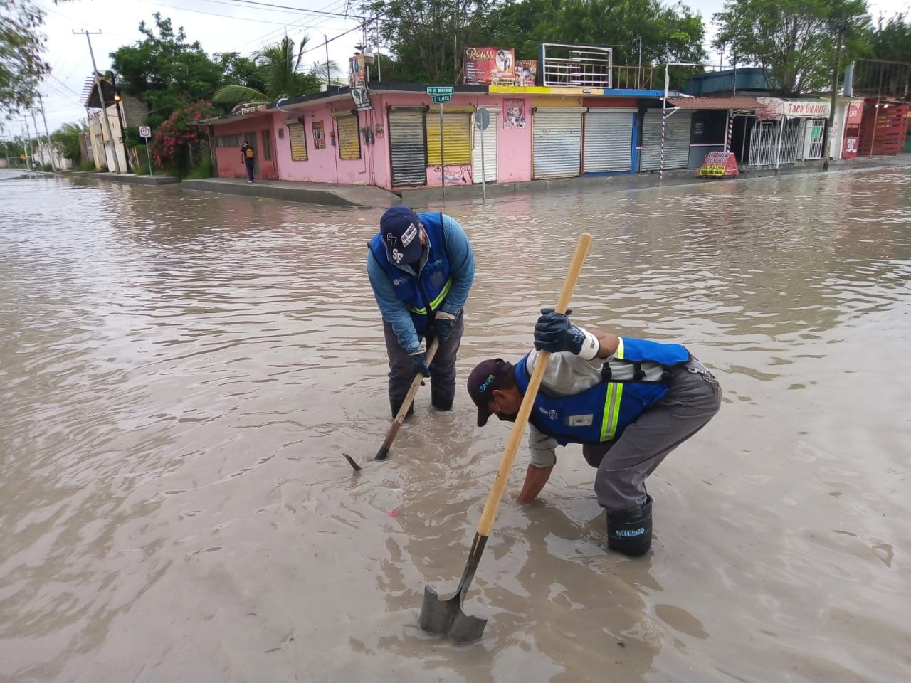 Para desfogar las inundaciones causadas por las lluvias registrada en horas de la madrugada de este martes, se realizan acciones de limpieza en alcantarillas y pluviales de las colonias Casa Bella y Fraccionamiento Reynosa.
