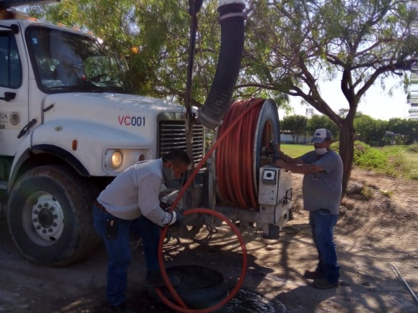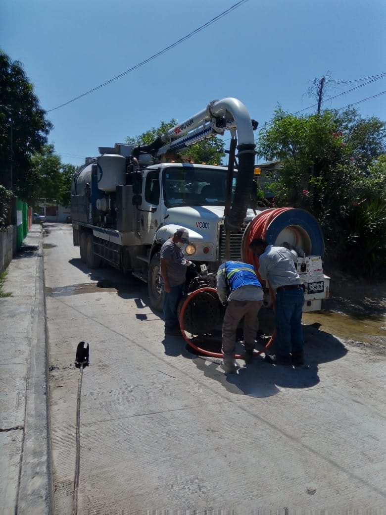 Para mejorar el servicio de drenaje sanitarios en sectores de las colonias Villa Florida sector A, Pedro J. Méndez, Fuentes del Valle y Mano con Mano, se utilizó el camión Vactor para hacer limpieza profunda en las redes sanitarias.