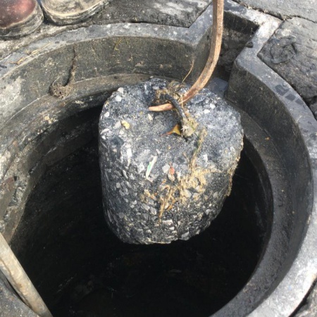Un tapón de concreto que obstruía el servicio de drenaje sanitario a usuarios en un sector de la colonia Villa Florida, fue retirado de la línea de 8 pulgadas de diámetro, en la calle Crisantemo con avenida De los Pinos.