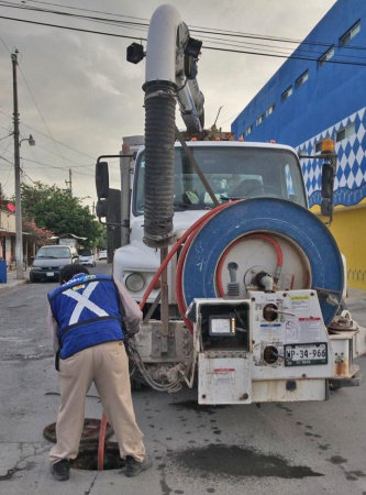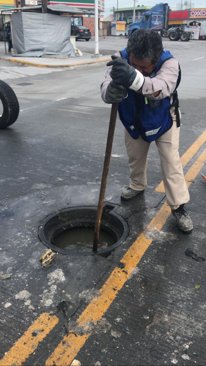 A fin de bajar los niveles de agua residual de las alcantarillas en sectores del fraccionamiento San Valentín, Longoria y Rodríguez, se removieron residuos de las líneas generales.