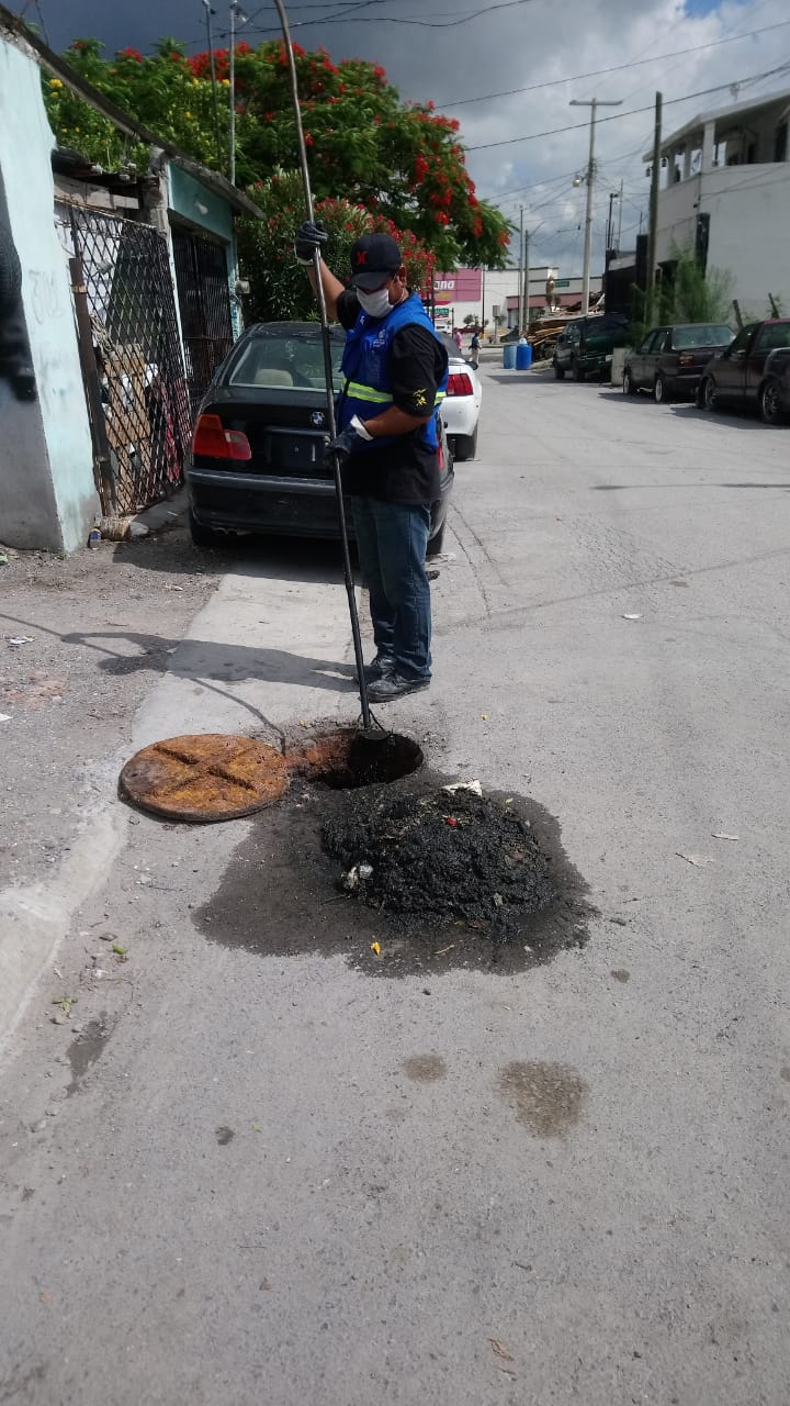 Para eliminar el derrame de agua residual en el bulevar Álvaro Obregón, se limpiaron las redes sanitarias ubicadas en esta avenida, así como en las calles Coahuila y Pánuco, Chiapas, callejón 10 y Paseo de las Jacarandas, de la colonia Rodríguez.