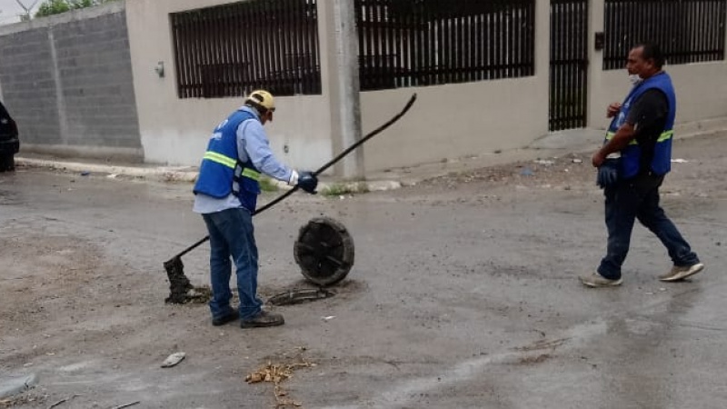A fin de restaurar el servicio de alcantarillado a los usuarios de las calles Guillermo Prieto, David Alfaro Siqueiros, Punta Ixtlahuite y Lapislázuli, de las colonias Voluntad y Trabajo, Jarachina Sur, Puerta del Sol y La Joya, respectivamente, se limpiaron las líneas generales de drenaje.