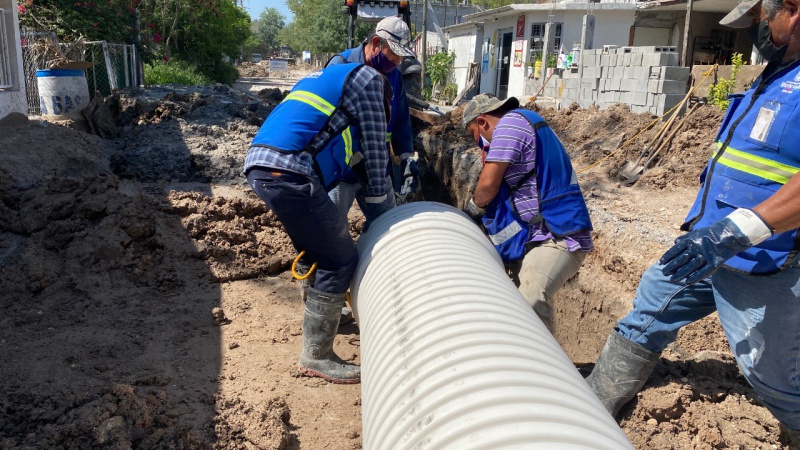 Con el reemplazo en 104 metros lineales con tubería de 24 pulgadas de diámetro, la rehabilitación del caído en la calle Martín Carrera, en la colonia López Portillo III, tiene un avance del 70 por ciento.
