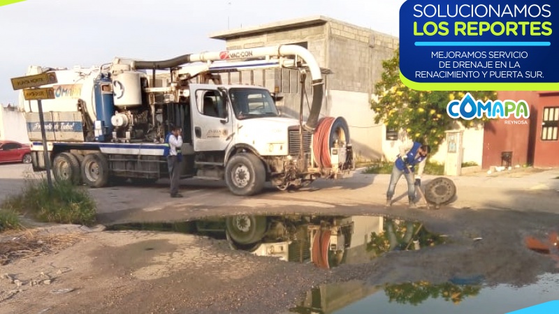 En atención al llamado de los ciudadanos ante el CIAC, con los camiones Vactor se removieron a presión los residuos que obstruían el flujo en las redes sanitarias de las colonias Renacimiento y Puerta Sur, mejorando el servicio de alcantarillado.