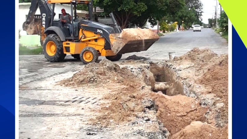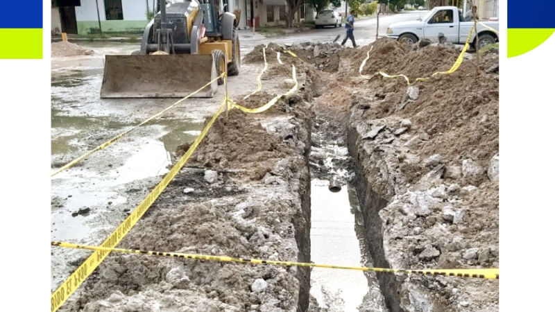 Para solucionar el derrame de agua residual en la calle Toteco, en la colonia Petrolera, se trabaja en la instalación de 25 metros lineales con tubería PVC para la interconexión de una a otra alcantarilla.