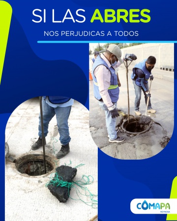 Durante temporada de lluvias, pedimos a los usuarios no abrir las tapas de las alcantarillas para dejar fluir el agua, ya que les entra tierra y piedras que arrastra la corriente y finalmente obstruyen el paso del agua y provocan el estancamiento de la misma.