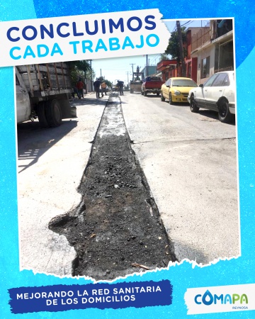Para concluir las labores de reparación de un caído que se encontraba ubicado en la calle Sol de Mayo con Praxedis Balboa en la colonia Longoria, vaciamos carpeta asfáltica dejando paso seguro para quienes transitan por esta vía, además de haber mejorado el servicio de drenaje en domicilios de este sector.