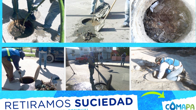 Desazolvamos alcantarillas en calles de las colonias Las Torres, La Cañada, Margarita Maza de Juárez, fraccionamientos Valle Soleado y Hacienda Las Fuentes, de donde extrajimos grandes cantidades de grasas y basura que obstruían la corriente de agua residual de los hogares a la red sanitaria.