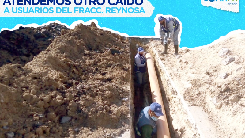 En atención a usuarios del Fraccionamiento Reynosa, trabajamos en el cambio de 115 metros lineales de tubería dañada de la red sanitaria ubicada en la calle Carmina entre 20 de Noviembre y Don Elías.
