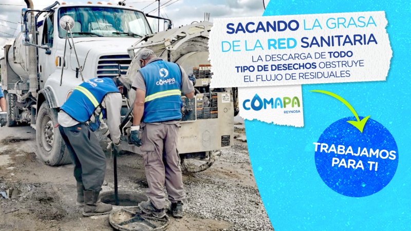 En respuesta a reportes de vecinos, personal del organismo sondea la red de drenaje sanitario en distintos sectores de #Reynosa.