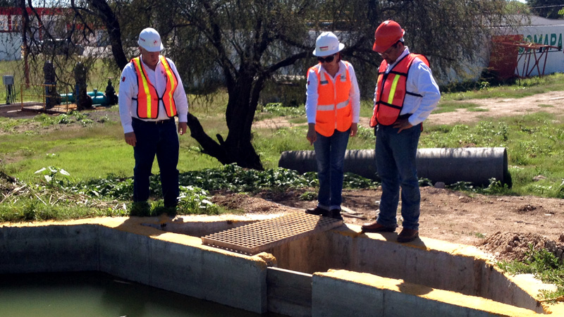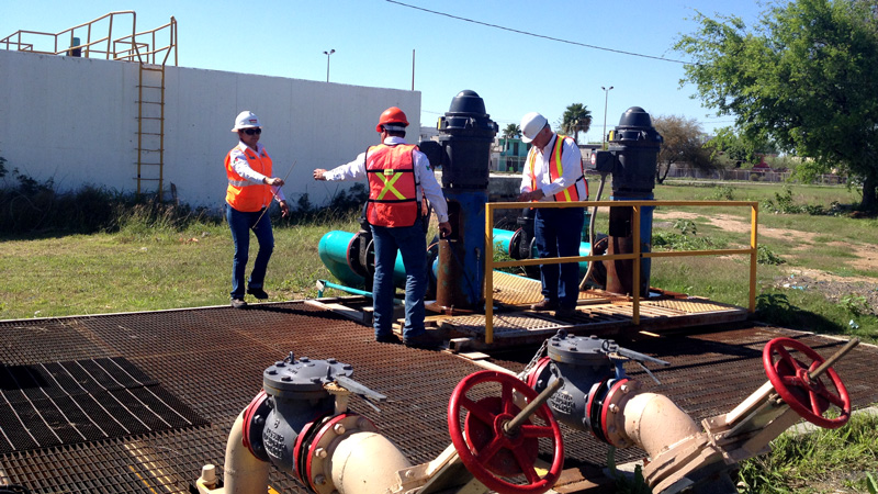 En compañía del Biól. Guillermo Nava Lujano, Coordinador de Potabilización, y la Quím. Sandra Zúñiga Tijerina, Encargada de la Planta "Benito Juárez", el Gerente Técnico y Operativo de la institución supervisó las condiciones de operación de esta planta potabilizadora; así mismo, planteó los proyectos a realizar para la optimización de los procesos de potabilización del agua.