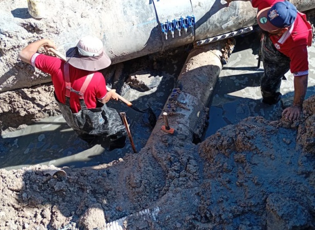En esta ocasión, personal del área de Aguas Residuales llevó a cabo la instalación de abrazaderas y tubería en el emisor sanitario ubicado sobre la calle Calandrias, en la colonia Manuel Tárrega, con el propósito de solucionar el problema de fugas de aguas residuales que afectaba a los vecinos y de esta manera mejorar la infraestructura sanitaria del sector.