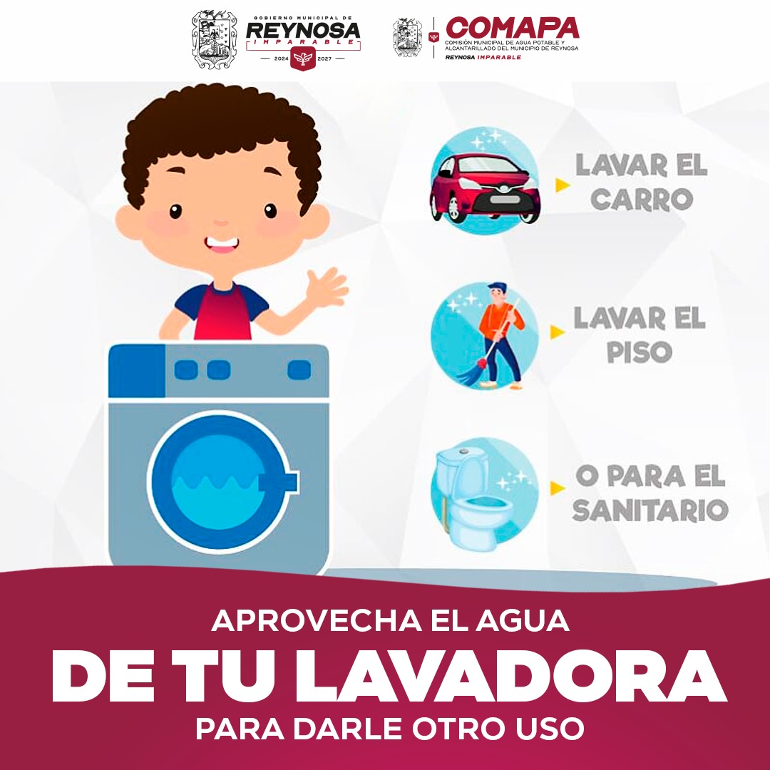 Con el compromiso de fomentar acciones que contribuyan al cuidado y ahorro del agua, la Comisión Municipal de Agua Potable y Alcantarillado de Reynosa recomienda a las familias reynosenses aprovechar el agua generada por sus lavadoras para darle un segundo uso dentro del hogar.